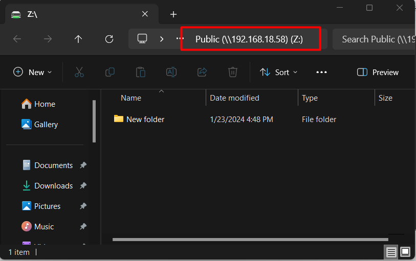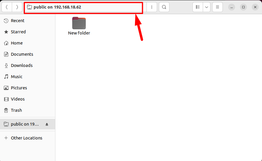 After connecting, we created a “New folder” in the shared directory to test the working of the “samba” share. To view the contents of the shared folder, run: