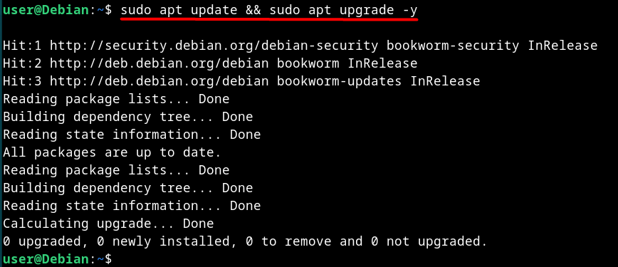 Keep the system’s packages updated to minimize the installation error. Run the following command to do so: