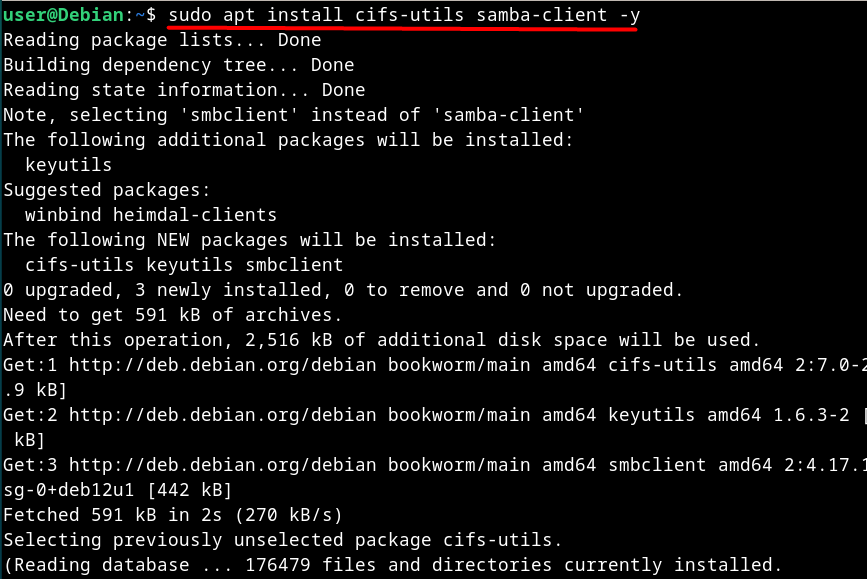 To test whether the “samba” server is working correctly, users must install the “cifs-utils” via the following command: