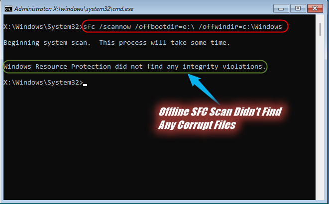 - /offbootdir=directory: This flag is usable while running the “sfc scan” via the Windows Recovery Environment. It specifies the location of the boot directory.