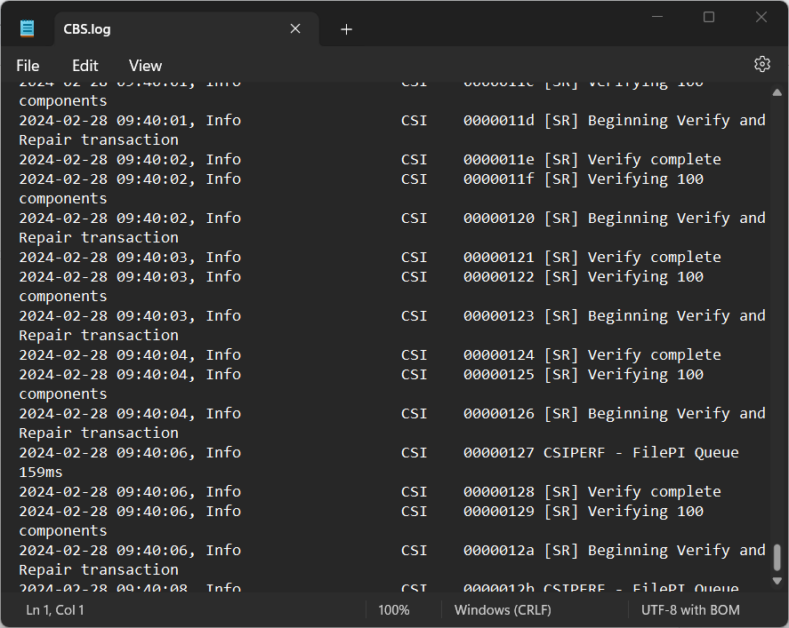 It opens the CBS.log file for further analysis of the “SFC” command’s output: